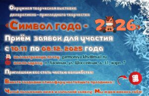 Для участия в выставке необходимо ознакомиться с положением, прислать заявку на электронную почту garmoniya.khv@mail.ru с пометкой «Символ года».