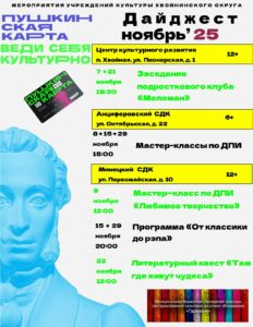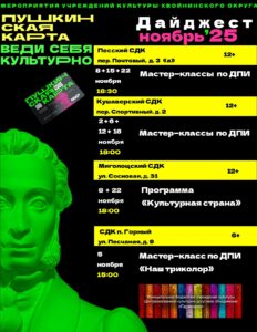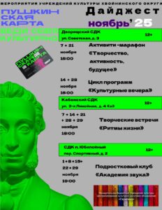 Вашему вниманию! Актуальные мероприятия в учреждениях культуры Хвойнинского округа, доступные к посещению по программе «Пушкинской карта» от 14 до 22 лет.